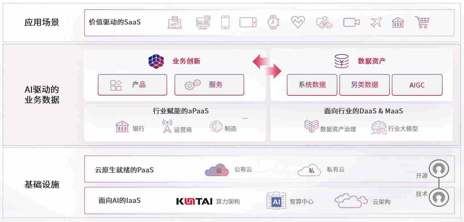 数字时代,,围绕企业数字化转型的关键要素,,,jackpot数码开创性的提出数云融合战略和技术体系框架,,,,着力在云原生、、、数字原生、、AI原生和信创产业上架构产品和服务能力,,,,为处在不同数字化转型阶段的快消零售、、、、汽车、、金融、、、医疗、、、、政企、、、、教育、、、运营商等行业客户提供泛在的敏捷IT能力和融合的数据驱动能力,,,,构建跨界融合创新的数字业务场景和新业务模式,,,,助力企业级客户建立面向未来的核心能力和竞争优势,,全面推动社会的数字化、、、、智能化转型升级。。。。